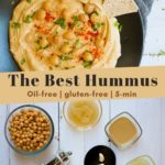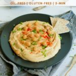 This oil-free hummus is the smoothest, creamiest hummus you will ever come and is made without using any oil. Instead, we use aquafaba for the perfect consistency and texture. The best part is that you can make it from scratch in just 5 minutes.