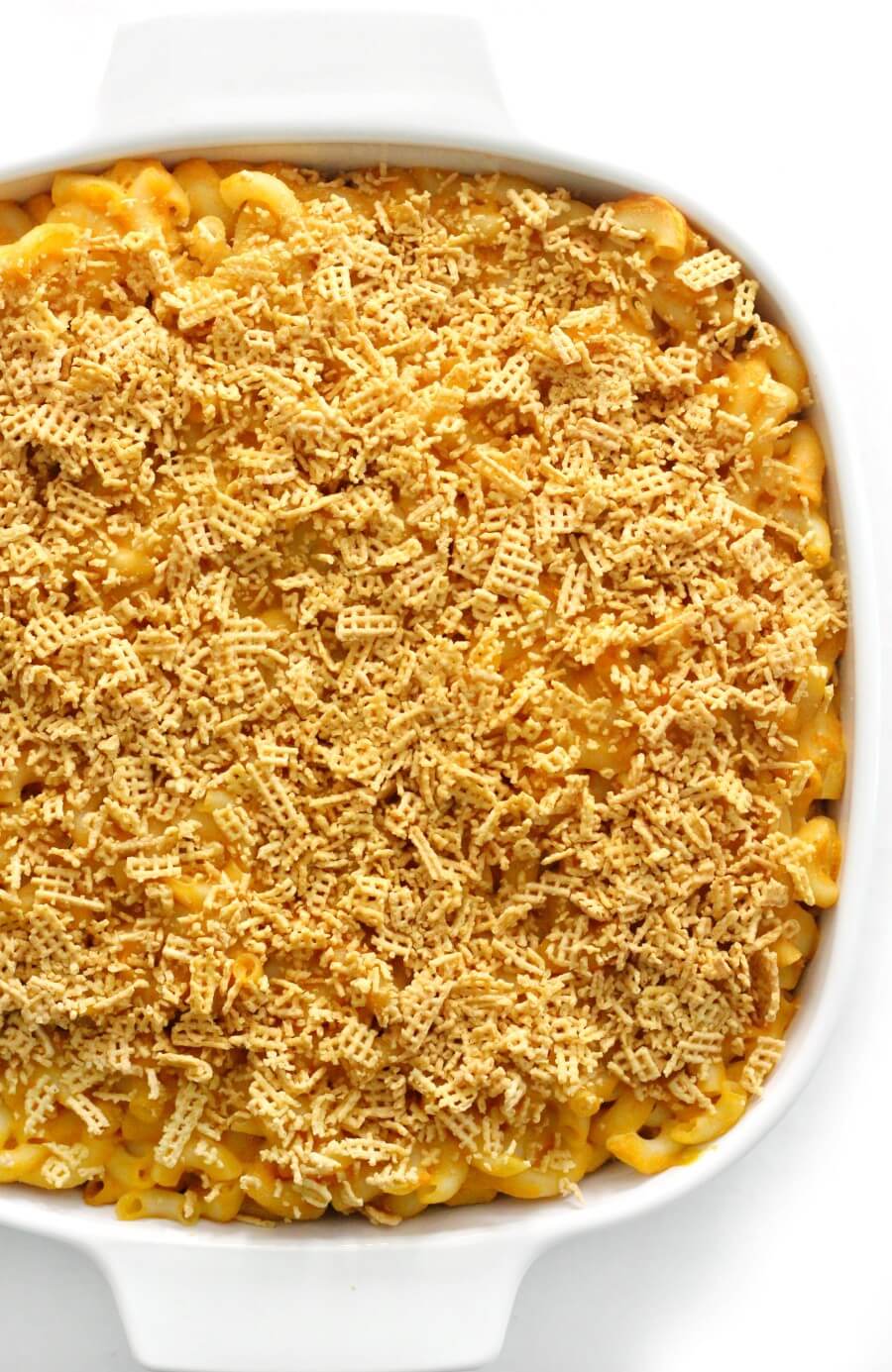 This baked mac and cheese recipe uses Corn Chex as a topping, and it looks all sorts of yum!