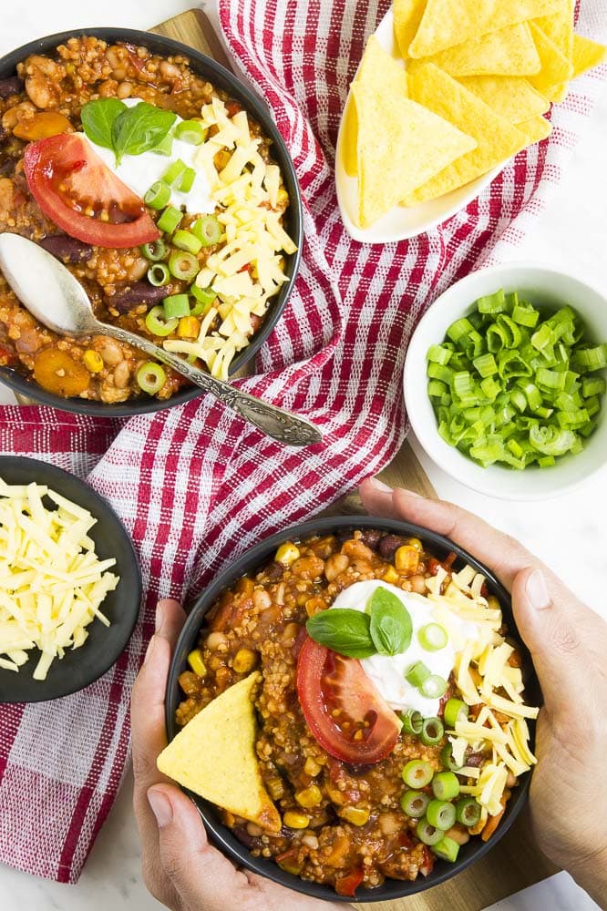 In the below picture, you can see my vegan bean chili with millet. I used millet to make it more hearty and filling as well as to have some chunky texture in place of ground beef. But millet also helped to make this chili thick.