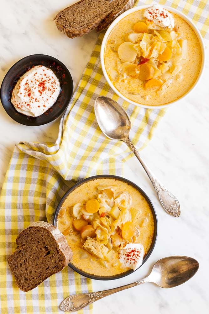 If you’re looking for a dairy-free alternative, try using canned full-fat or light coconut milk. It works like a charm while imparting a coconut-y taste to your soup at the same time.