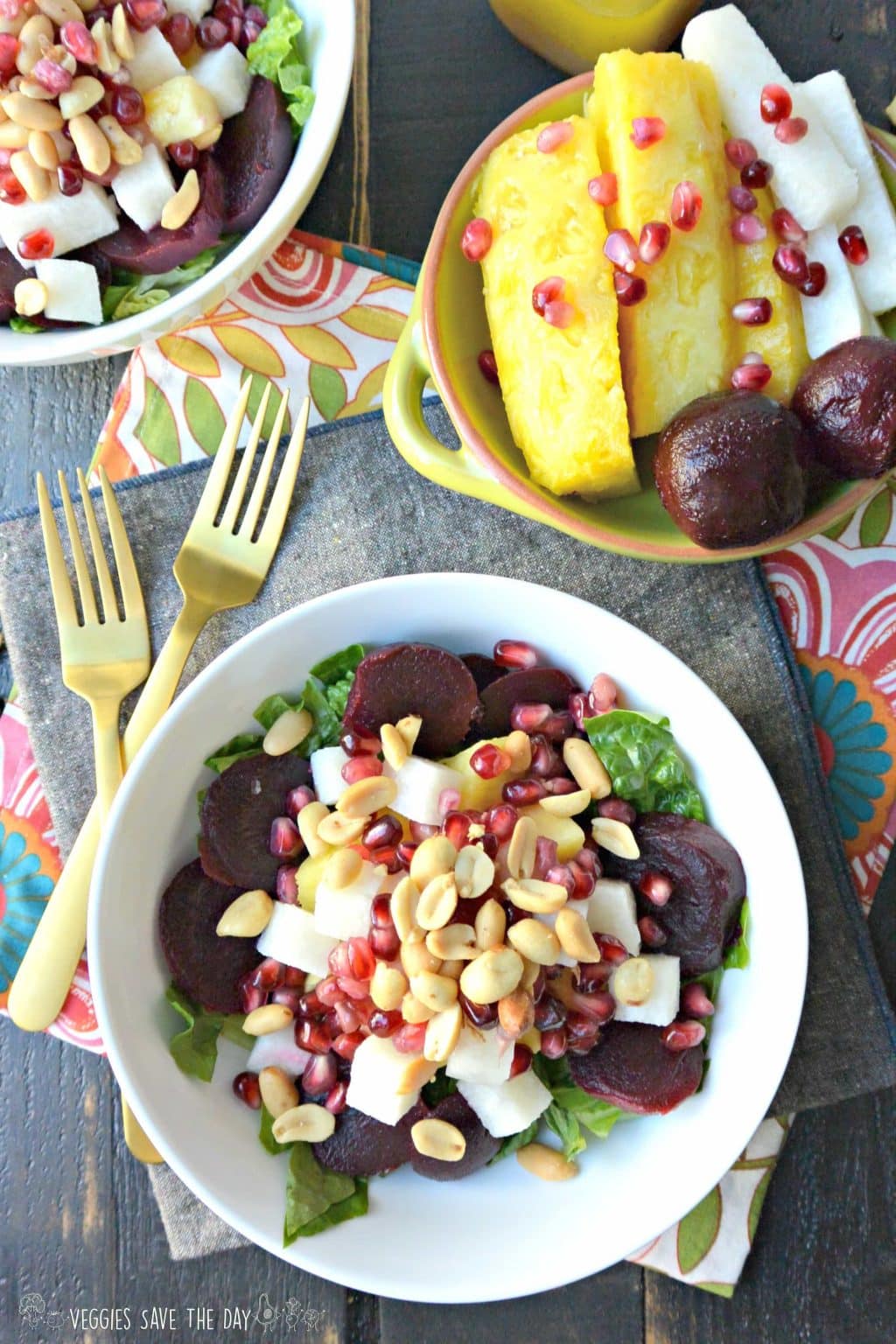 The Mexican Christmas Eve Salad by Veggies Save The Day is a fresh take on the Mexican salad that is definitely fit to save your Christmas Day! With some lettuce, beet root, pineapple, pomegranate seeds and a drizzling of some orange vinaigrette, this refreshing salad can be put together in less than 15 minutes.