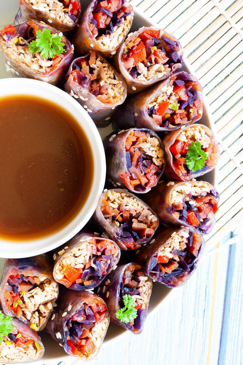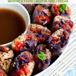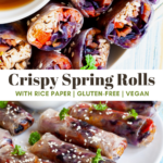 These rice paper spring rolls have a crispy texture and a savory, delicious veggie filling with marinated shredded tofu. Plus, they’re completely vegan too!
