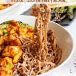 - Serve soba noodles in bowls and add a couple of tablespoons of the sauce on top. Stir well with a fork. Add any optional garnish or topping and enjoy.
