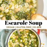I love how simple and delicious this escarole and bean soup recipe is. This easy-to-make soup combines escarole, a leafy green similar to lettuce, with simple ingredients like white beans, pasta, lemon juice, and garlic for a flavor-packed meal.