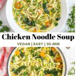 To add a richer flavor to any vegan chicken noodle soup recipe, stir in your favorite dairy-free milk or your choice of vegan butter.