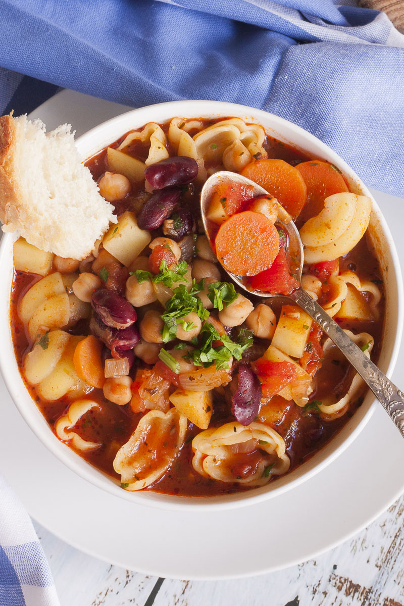 Red kidney beans and chickpeas are what make this soup filling and nutritious. Remember, if you are using dry beans and chickpeas, cook them separately and add them once they are soft and ready to eat.