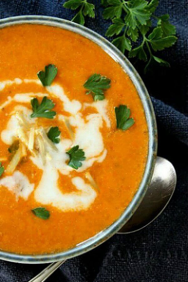 This list wouldn’t be complete without some Indian flavors like ginger, cumin, turmeric, garam masala, or cayenne pepper. I had roasted cauliflower in tikka masala sauce several times, which was so delicious. Turning this combination into a soup is such an amazing idea. Try this Cauliflower Tikka Masala Soup from Vegan in the Freezer now.