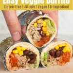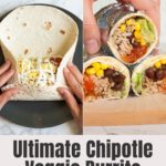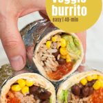 This chipotle veggie burrito recipe is a supremely delicious epic meatless burrito, chipotle style, loaded with black beans, cilantro lime, rice, fajita veggies, and more. You won’t even miss the meat with this recipe.