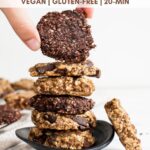 I use over-ripe mashed bananas in this recipe, which keeps the cookies moist with a lovely texture and naturally sweet taste. Plus, these cookies are not just vegan, but they are also sugar-free, oil-free, and gluten-free, making them ideal for most, if not all, people.
