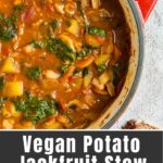 This jackfruit stew is a hearty and filling vegan beef stew that is the best way to use canned jackfruit. It is a warm and steamy bowl of this delicious vegan comfort food that is perfect for a cozy night in.
